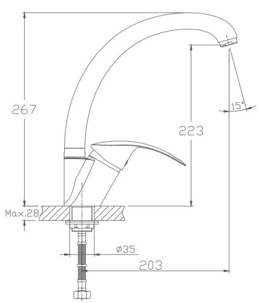 • Высота смесителя:
