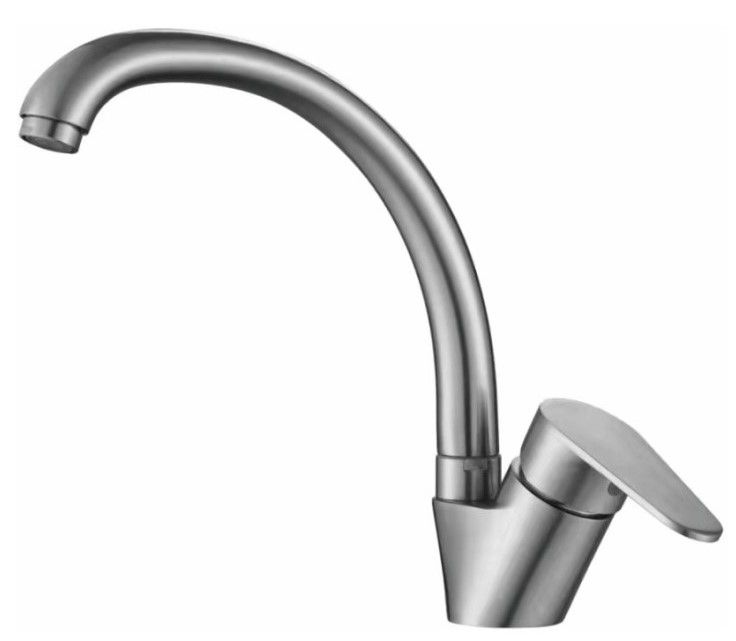 Смеситель для кухни бренда Haiba.Изготовлен из нержавеющей стали.Картридж 35 мм.Укомплектован аэратором.Гибкая подводка 40 см.С поворотным изливом.