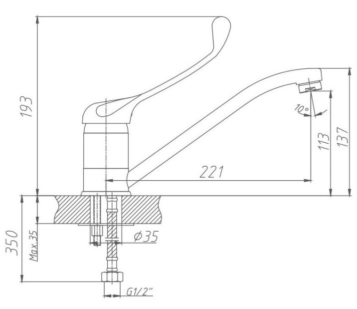 Смеситель для кухни бренда Haiba с хирургической ручкой.Изготовлен из латуни.Картридж 40 мм.Укомплектован аэратором.Гибкая подводка 40 см.С поворотным изливом.