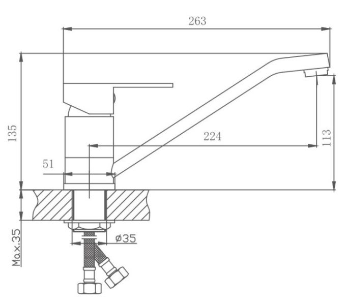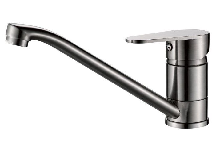 Смеситель для кухни бренда Haiba.Изготовлен из нержавеющей стали.Картридж 40 мм.Укомплектован аэратором.Гибкая подводка 40 см.С поворотным изливом.