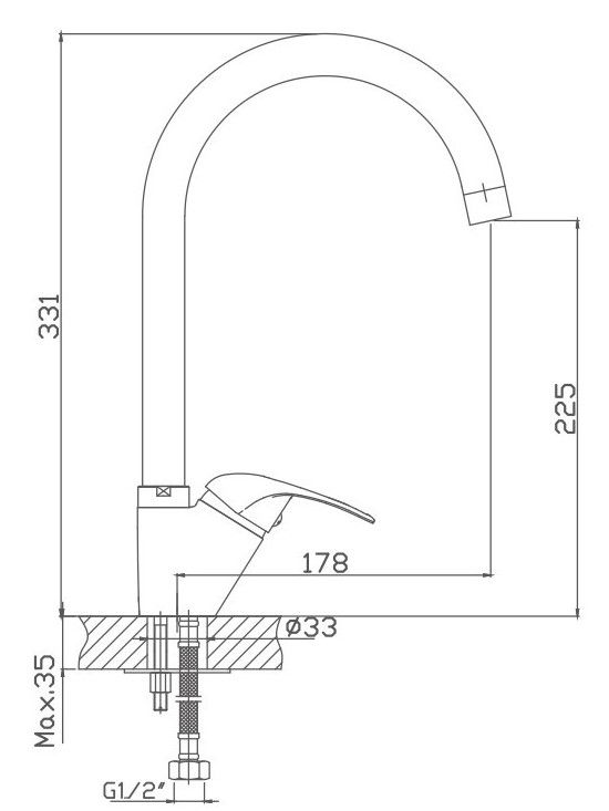 Смеситель для кухни бренда Haiba.Изготовлен из латуни.Картридж 35 мм.Укомплектован аэратором.Гибкая подводка 40 см.С поворотным изливом.