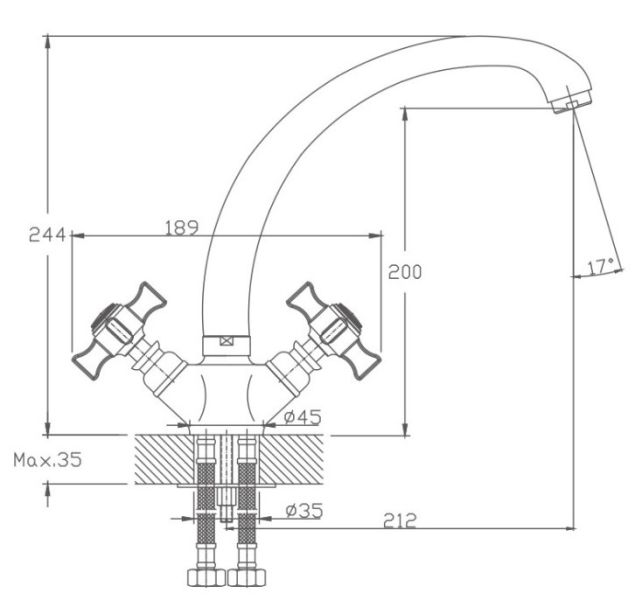 Смеситель для кухни бренда Haiba.Изготовлен из латуни.Укомплектован аэратором.Гибкая подводка 40 см.С поворотным изливом.