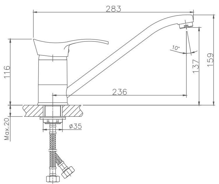 Высота смесителя:16