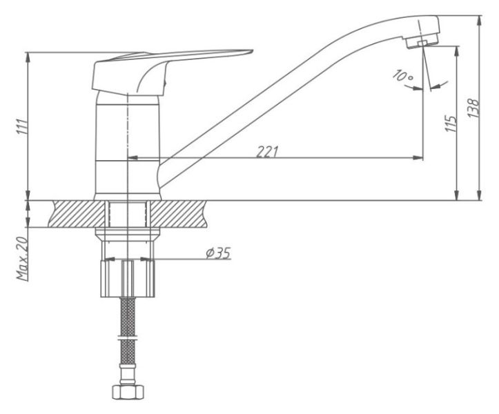 Смеситель для кухни бренда Haiba.Изготовлен из латуни.Картридж 40 мм.Укомплектован аэратором.Гибкая подводка 40 см.С поворотным изливом.
