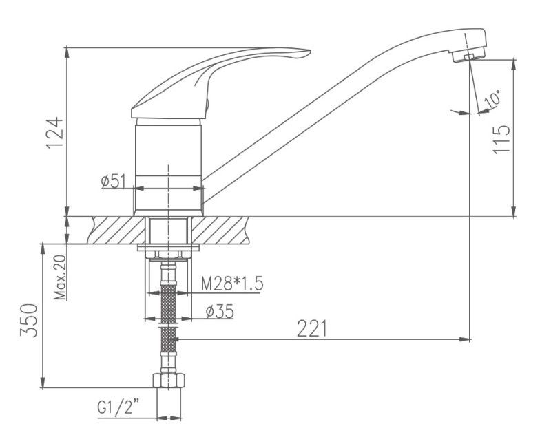 • Высота смесителя: