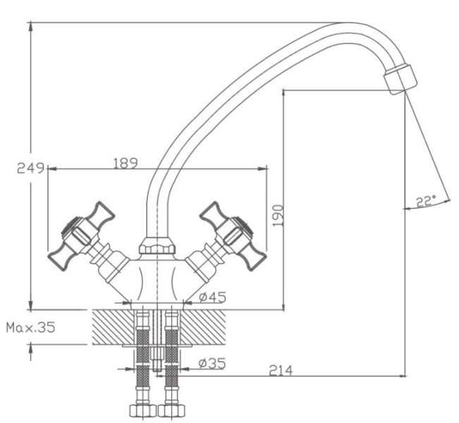 Смеситель для кухни бренда Haiba.Изготовлен из латуни.Укомплектован аэратором.Гибкая подводка 40 см.С поворотным изливом.