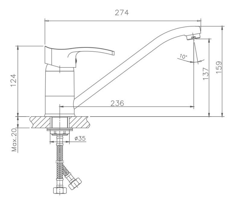 Гибкий излив:нет