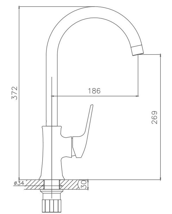 • Высота смесителя: