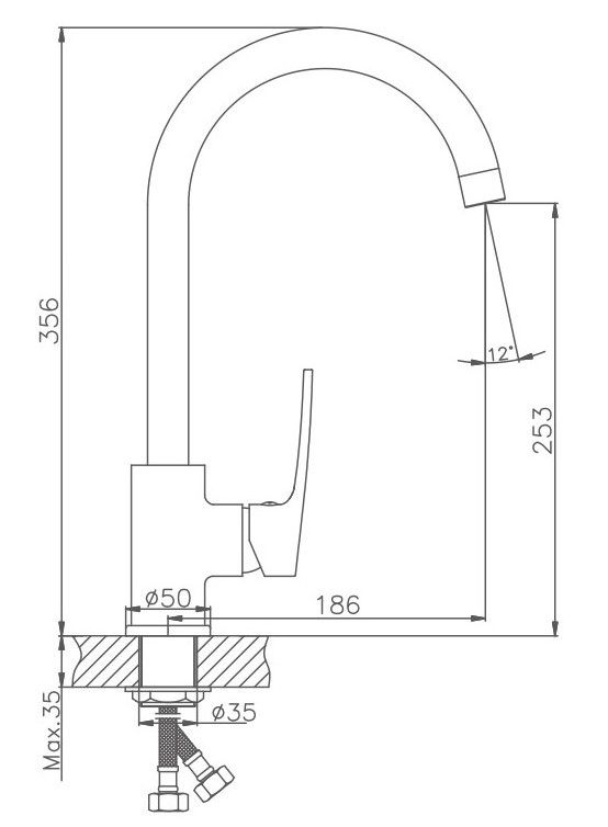 • Высота смесителя: