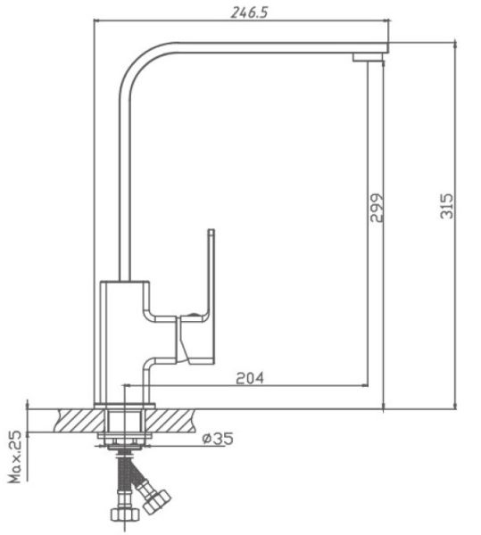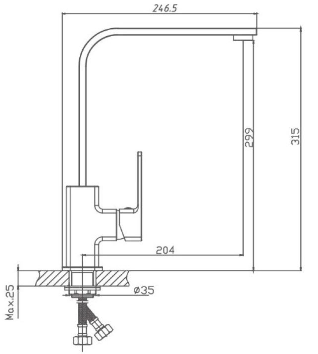Смеситель для кухни бренда Haiba.Изготовлен из латуни.Картридж 35 мм.Укомплектован аэратором.Гибкая подводка 45 см.С поворотным изливом.