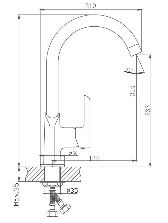 • Высота смесителя: