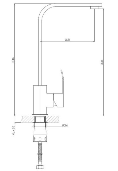 Смеситель для кухни бренда Haiba.Изготовлен из нержавеющей стали.Укомплектован аэратором.Гибкая подводка 40 см.С поворотным изливом.