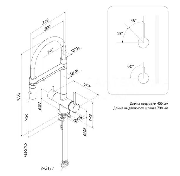 Длина излива, см:20