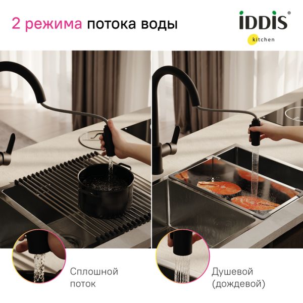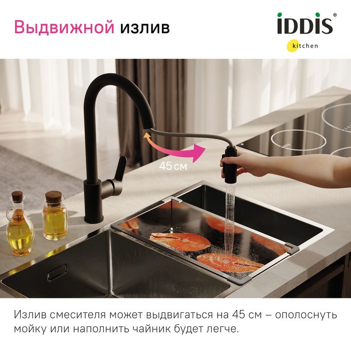 Смеситель для кухни IDDIS Cuba CUBBLP0i05 с выдвижным изливом чёрный матовый купить