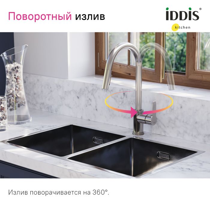 Смеситель для кухни IDDIS Cuba CUBSTP0i05 с выдвижным изливом сталь купить