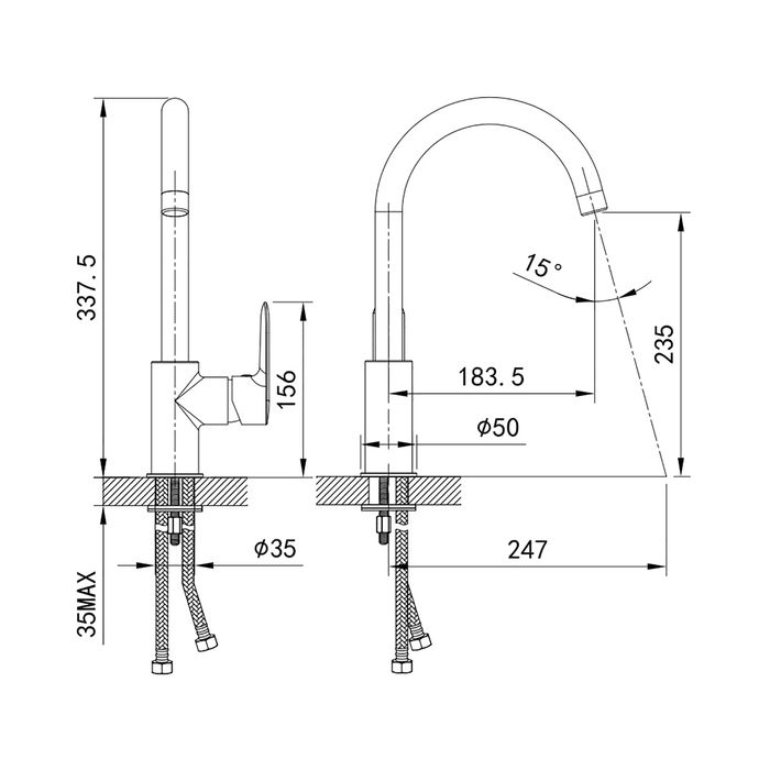 • Высота смесителя:
