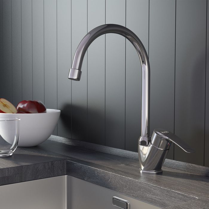 Высокий смеситель (высота излива – 307 мм) для кухни Ray имеет универсальный дизайн и подойдет для различных вариантов интерьерных решений. Благодаря поворотному изливу пользоваться им удобно на любой кухонной мойке. Может быть установлен как на мойку, так и на столешницу.