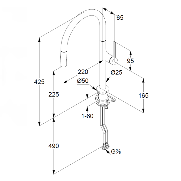 • Длина излива: 22 см