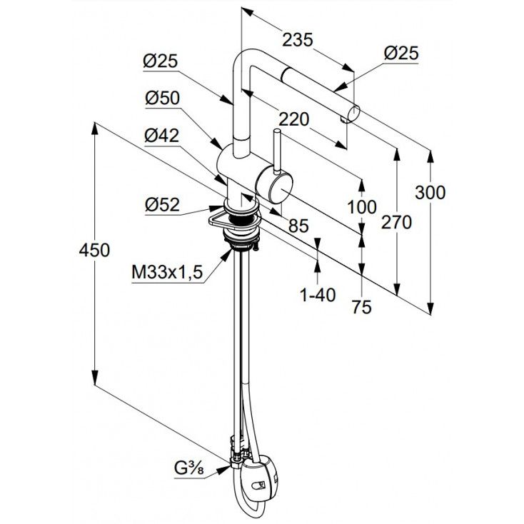 • выдвижной поворотный излив (220°)