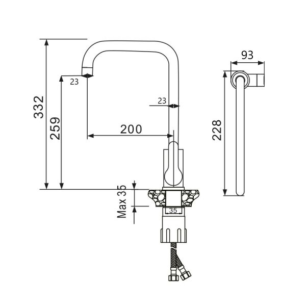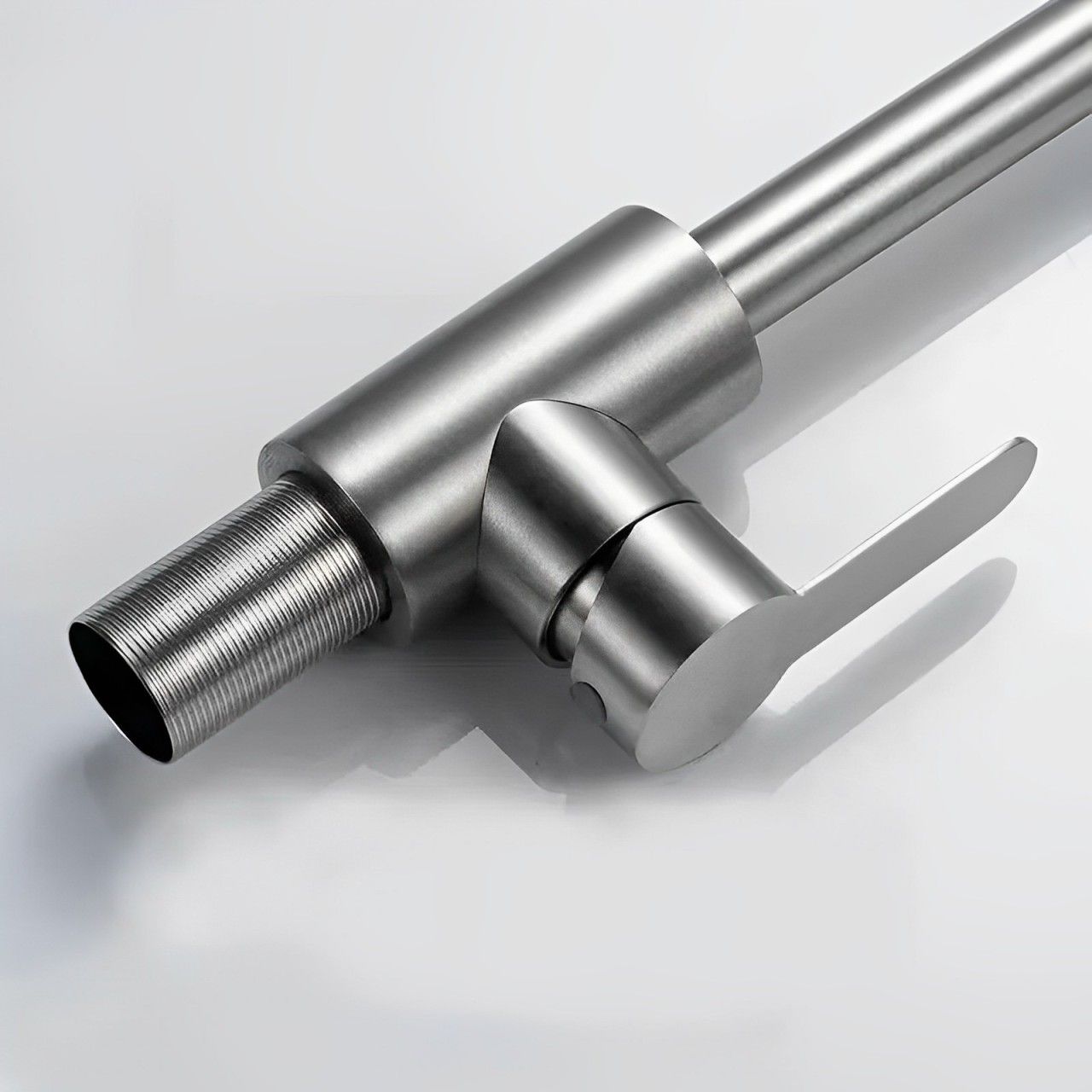 Смеситель для кухонной мойки Maretti Project-S PS31RZZ57 в цвете сатин — это идеальное сочетание современного дизайна и высокой функциональности. Изготовленный из прочной нержавеющей стали, он отличается долговечностью и устойчивостью к коррозии, а его сатиновое покрытие придает изделию элегантный и утонченный вид.Керамический картридж и рычажное управление обеспечивают плавный и точный контроль над потоком воды, делая использование смесителя максимально комфортным и удобным. Высокий поворотный излив с аэратором позволяет легко наполнять большие кастрюли и мыть габаритную посуду, а также облегчает доступ ко всем уголкам мойки.Крепление смесителя осуществляется при помощи гайки, что гарантирует его надежность и устойчивость. В комплекте идет гибкая подводка длиной 60 см со стандартом подключения 1/2", что упрощает процесс установки.С гарантией на 5 лет вы можете быть уверены в высоком качестве и надежности этого продукта, который станет незаменимым помощником на вашей кухне и будет радовать вас своим стильным дизайном и функциональностью на протяжении долгого времени.