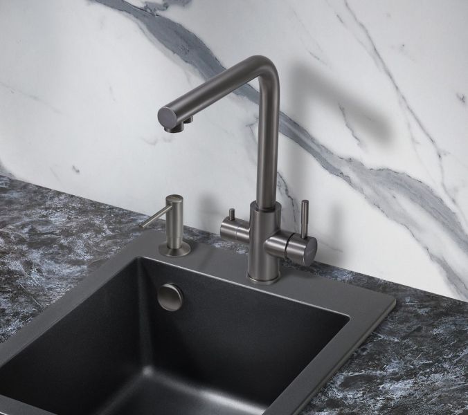 Смеситель для кухни Milacio Ultra MCU.553.GM под фильтр с краном для питьевой воды воронёная сталь