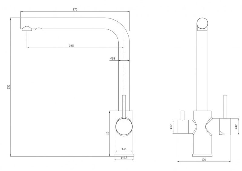 Смеситель для кухни Milacio Ultra MCU.553.GM под фильтр с краном для питьевой воды воронёная сталь купить