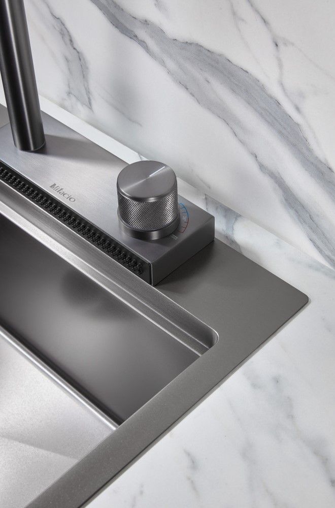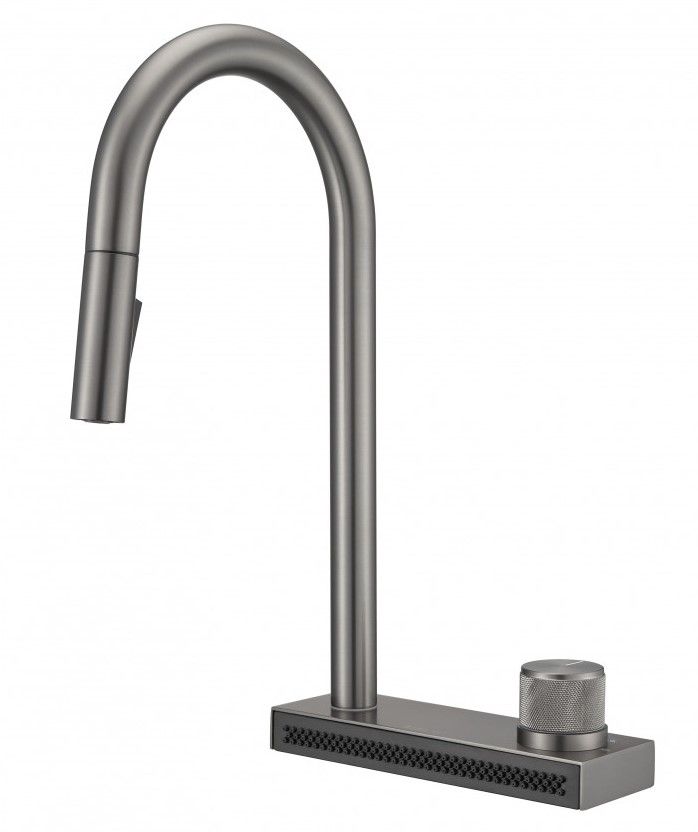 Смеситель для кухни Milacio Ultra MCU.556.GM с вытяжной лейкой и каскадным душем воронёная сталь купить