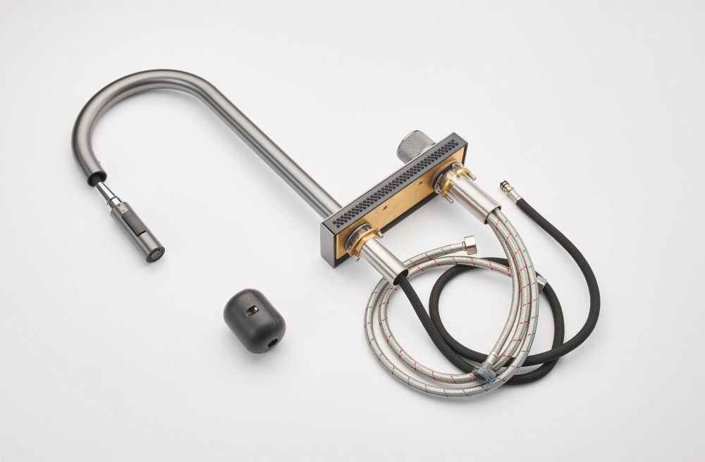 Смеситель для кухни Milacio Ultra MCU.556.GM с вытяжной лейкой и каскадным душем воронёная сталь