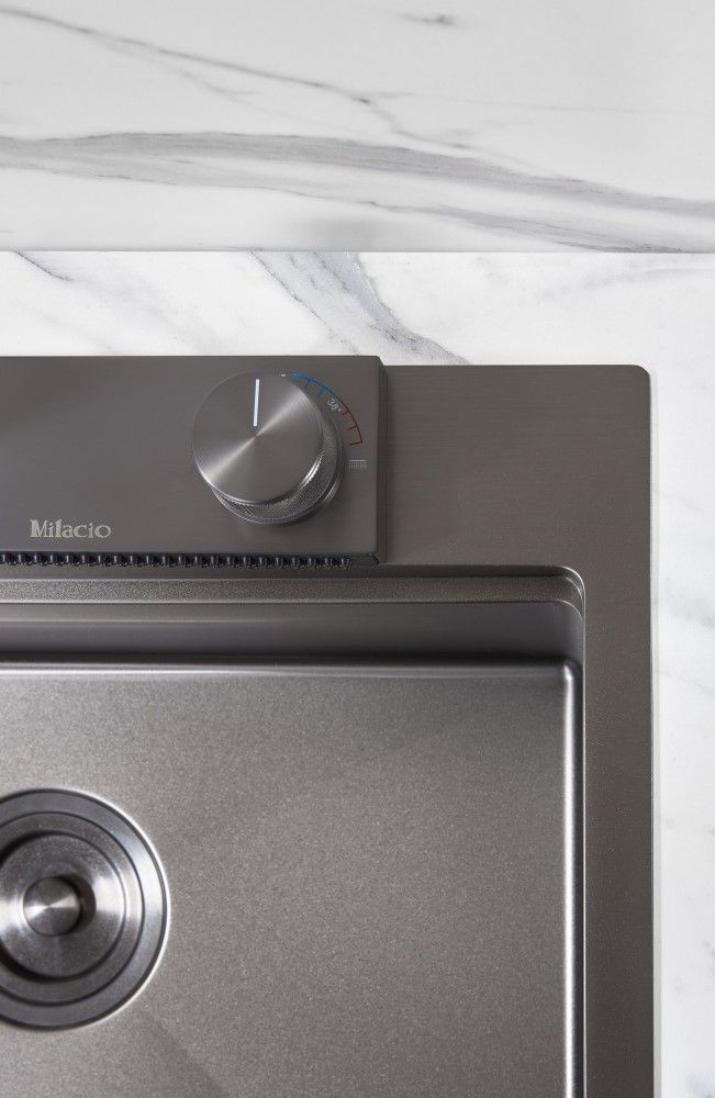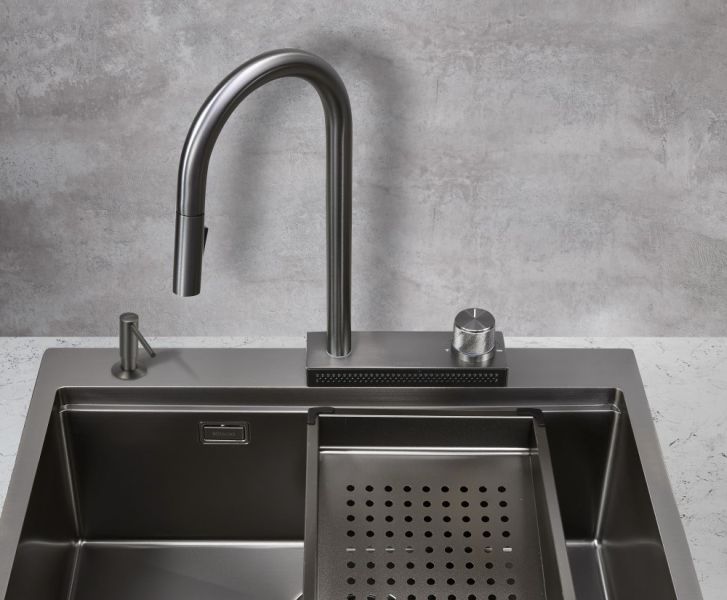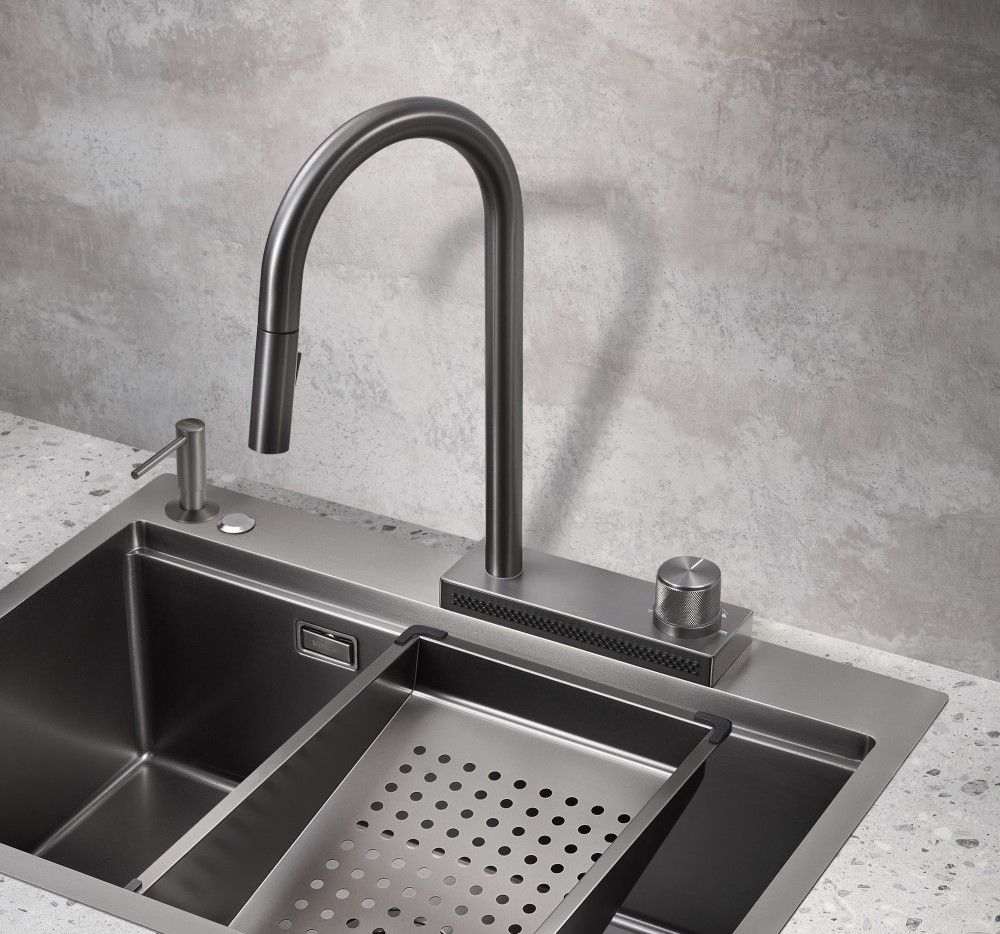Смеситель для кухни с вытяжной лейкой и каскадным душем Milacio Ultra ( MCU.556.GM ) сталь воронёная