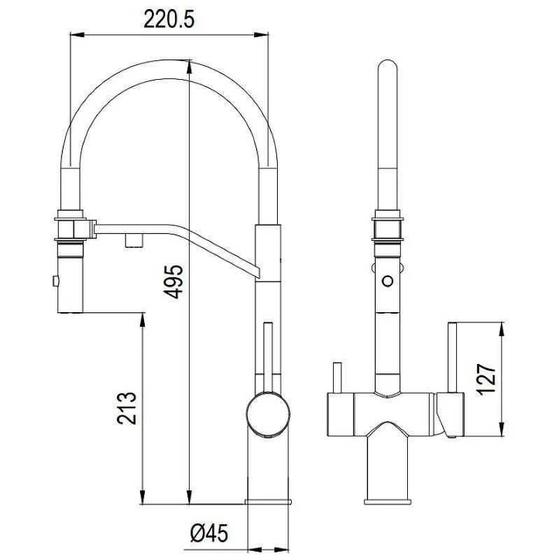 Смеситель для кухни Milacio Ultra MCU.557.GM с подключением к фильтру и гибким изливом воронёная сталь купить