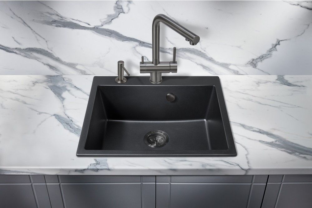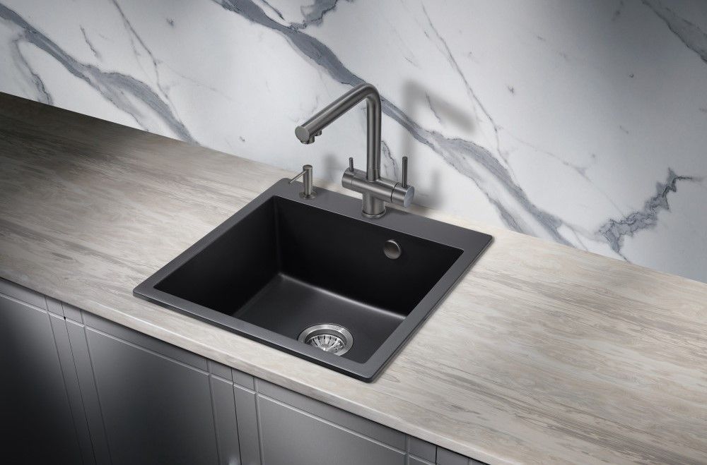 Модель выполнена в благородном цвете вороненая ( оружейная ) сталь и имеет изящный изогнутый кран, благодаря чему станет яркой, привлекающей внимание деталью на кухне и никого не оставит равнодушным.
