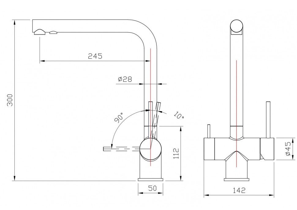 2. Возможность подключения фильтра обеспечивает легкий доступ к чистой питьевой воде и избавляет от необходимости установки дополнительного крана, сохраняя цельность и эстетику пространства. Для подачи фильтрованной воды предусмотрен отдельный рычаг регулировки.