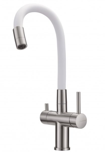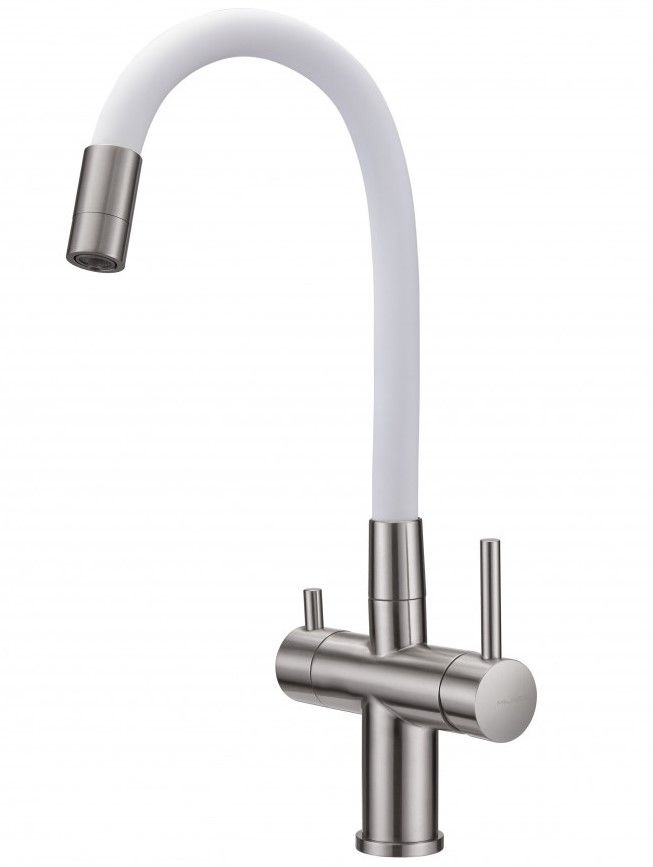 Смеситель для кухни Milacio Ultra MCU.560.SSW под фильтр с краном для питьевой воды и гибким изливом нержавеющая сталь/белый купить