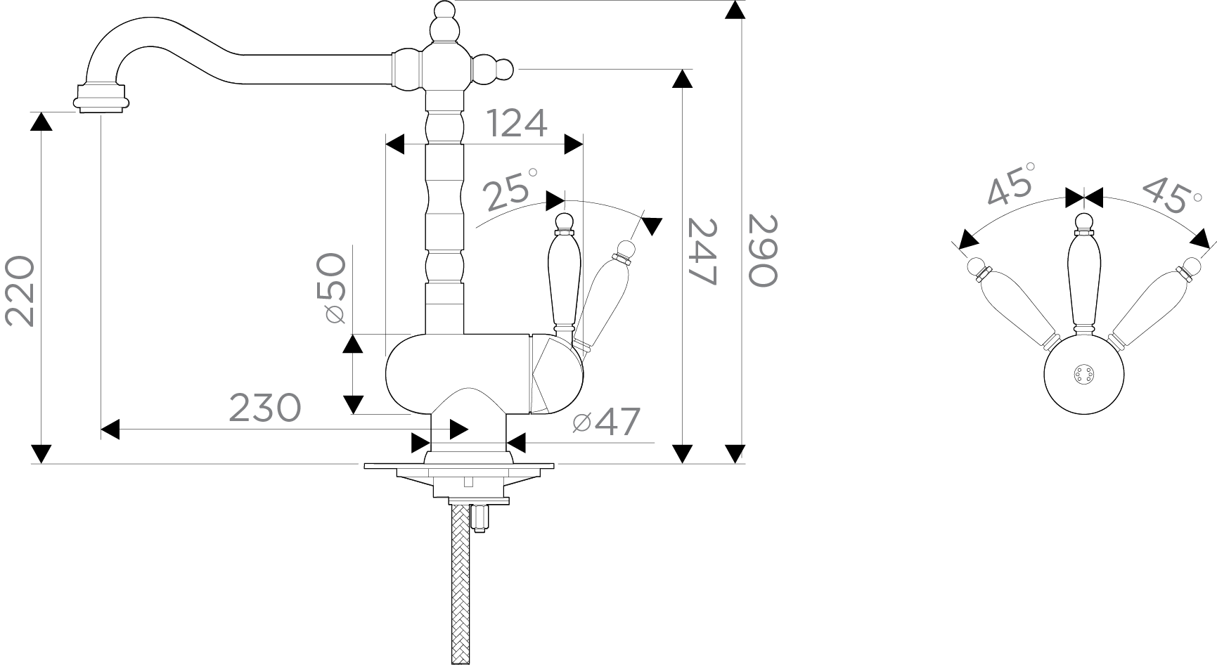 • Классический дизайн и удобство использования, благодаря высокому изливу; • Цвет: 005.Золото; • Высококачественная латунь сохранит воду чистой и здоровой; • Аэратор произведен из пластика, благодаря чему на нем никогда не появится известкового налета и ржавчины; • Коробка внутри проложена поролоном, который обеспечит сохранность изделия при транспортировке; • Полный набор креплений, соединительных шлангов, подробная инструкция и гарантийный талон в комплекте;