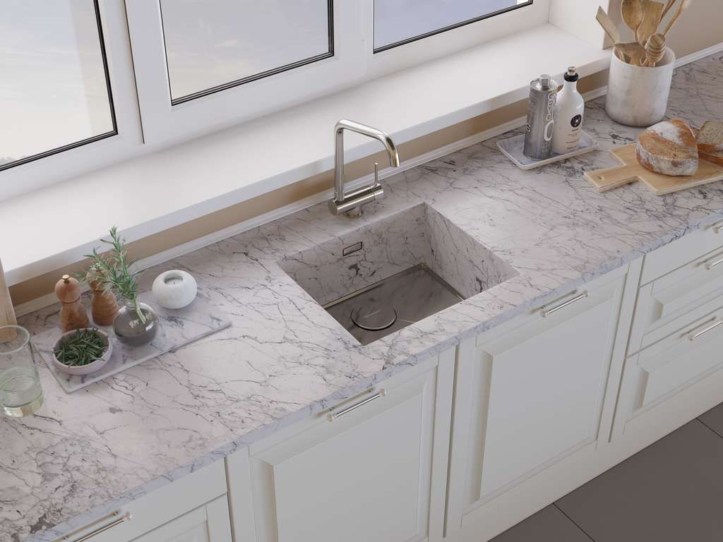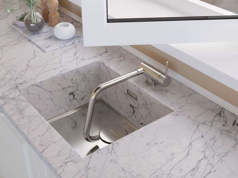 • Смеситель можно встроить в мойку любого материала и типа монтажа.