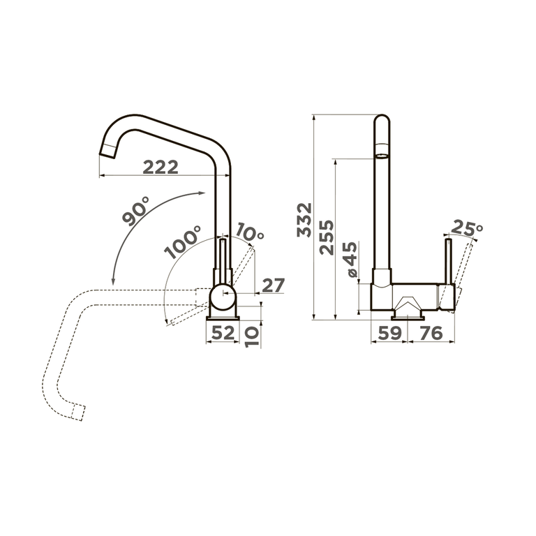 • Cмеситель для установки под окно c высоким поворотным изливом.