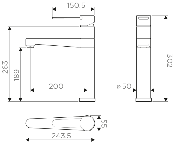 • Высота смесителя: