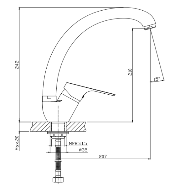 Однорычажный смеситель для кухни из коллекции Dia имеет R-образный поворотный излив, что делает этот кран удобным для глубоких раковин. Система даёт стабильный напор и возможность тонко настраивать температуру воды (керамический картридж). Плавный ход рычага смесителя – одно из главных преимуществ сантехники Orange, которая пользуется огромным спросом и является одним из лучших предложений в своей ценовой категории. Данная модель сочетает в себе надежность, долговечность и оригинальный внешний вид.