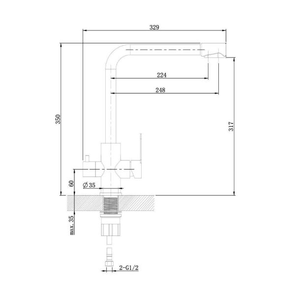 Смеситель для кухни (с керамическим картриджем) с возможностью подключения фильтра для воды – идеальное решение для тех, кто заботится о своем здоровье и здоровье близких. Он изготовлен из латуни с черным матовым покрытием, нанесенным методом порошковой окраски. Два отдельных канала исключают смешивание водопроводной и фильтрованной воды. Высокий поворотный излив с аэратором обеспечивает комфорт при мытье посуды и предотвращает разбрызгивание. Покрытие удобно в уходе – поверхность смесителя достаточно протирать мягкой салфеткой.