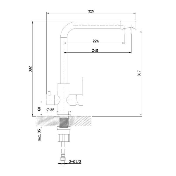 • Высота смесителя: