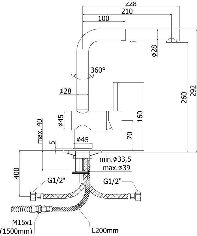 Смеситель для мойки с поворот.изливом и выдвижным душем на 2 струи из металла DUALGET, ХромСмеситель для кухни Paffoni Light LIG285CR-MET.ВНИМАНИЕ! В монтажной схеме указан европейский стандарт подводки 3/8, мы предлагаем комплект, адаптированный к российским условиям, со стандартом подводки 1/2.Комплектация: