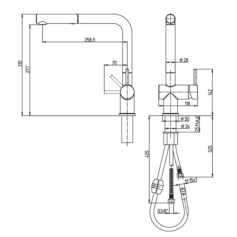- Выдвижная лейка с двумя режимами подачи воды.