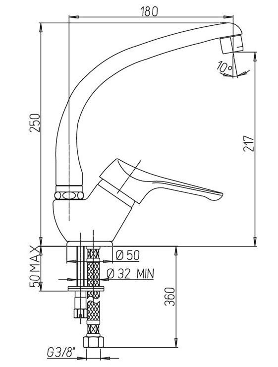 • Высота смесителя: