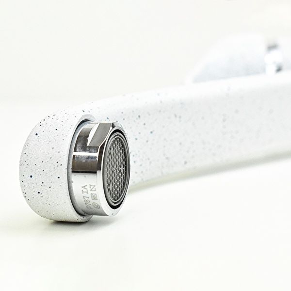 Все дело в цвете! Интересное решение для любителей традиционных моделей смесителей для кухни – PAINI JOLLY. Однорычажный смеситель с поворотным изливом обладает обтекаемой формой, знакомой и привычной многим. В этот раз этот популярный смеситель представлен в необычных цветах, что дает простор творчеству и позволяет сочетать его с мойками и кухонной мебелью разных фактур и материалов.Разнообразие цветаБелый с вкраплениями (гранит), комбинация черного и хромого цветов в корпусе смесителя, и три варианта бежевого цвета: сахара, бежевый с вкраплениями (гранит) и нежный трюфель. Теперь точно получится попасть в цвет столешницы и/или цвет мойки либо создать контрастные сочетания. Все варианты покрытия выполнены по специальной технологии, сохраняющей цвет и фактуру надолго и облегчающей уход за смесителем.Европейское качествоСделано в Италии. Гарантия – 5 лет.Технологии гарантируют долгий срок службыАэратор Neoperl наполняет поток воды кислородом, увеличивает напор, экономя воду. Одно движение пальцем для очистки сеточки. Nuovo Galatron - керамический картридж – основа, необходимая для долгой работы смесителя.Легкая уборкаМыльная губка и сухая тряпочка – все, что нужно для уборки. Несколько движений – и готово.