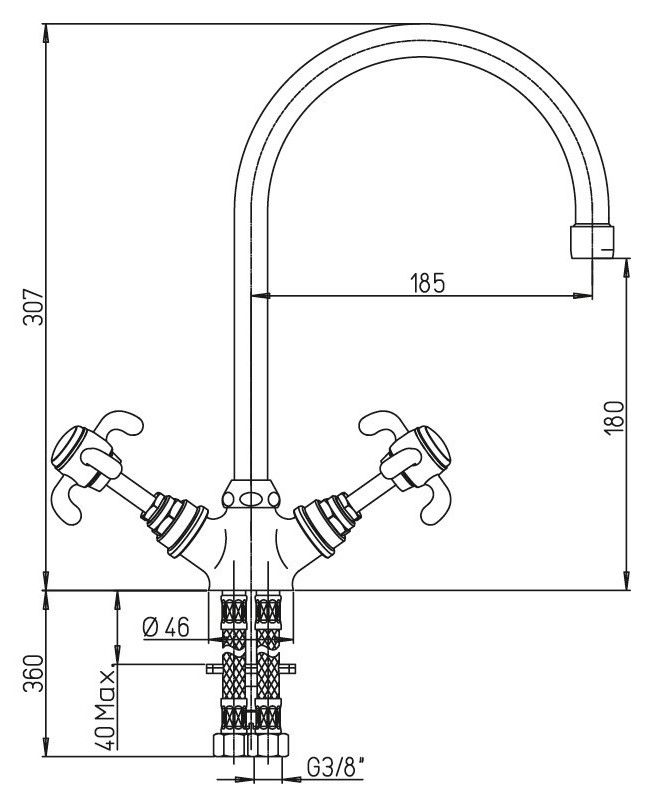 - Высокий корпус и поворотный излив дают больше возможностей при использовании на кухне.