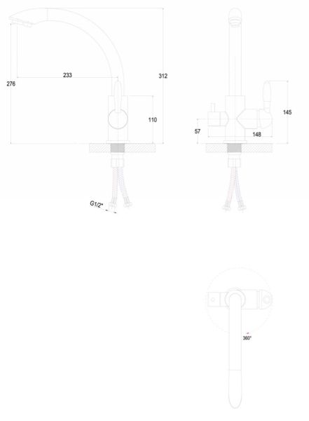 • Высота смесителя: