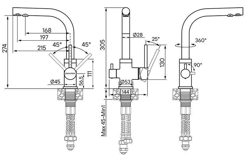 • Высота смесителя: