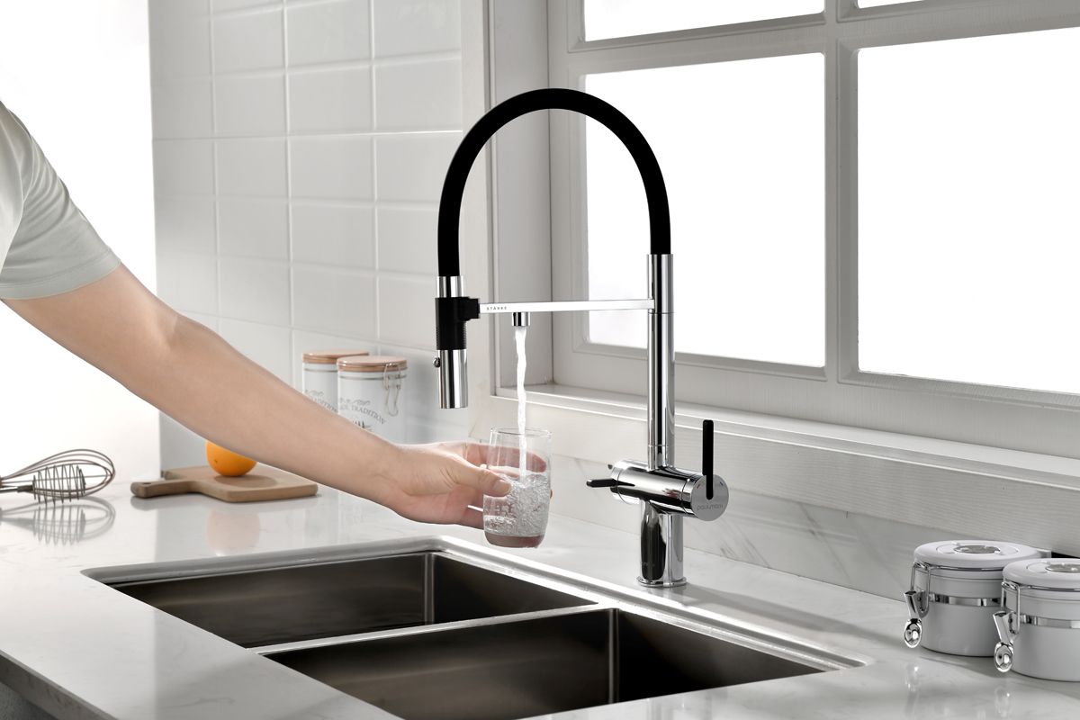 Смеситель для кухни, под фильтр, с гибким изливом, артикул Gr213188-CRВходит в премиальную серию кухонных смесителей STÄRKE.