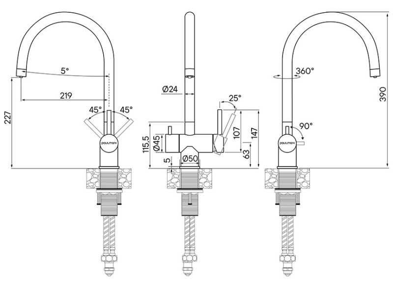 Смеситель для кухни Paulmark Heller He213218-SS нержавеющая сталь купить