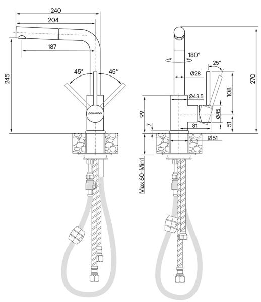 Смеситель для кухни с выдвижным шлангом, Ka214311-402Изготовлен из высококачественной латуни, которая отвечает высочайшим европейским стандартам качества, не содержит свинца, не разрушается со временем и безопасна для здоровья.Вытяжной шланг